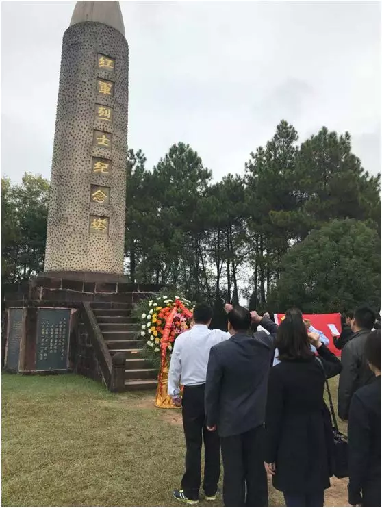 红军烈士纪念塔前敬献花篮,面对鲜红的党旗,学员们举起右手重温入党誓词,进一步强化党的观念,增强党员意识,自觉遵守党的纪律,使每个共产党员不忘职责和使命,确保做一名合格的共产党员.