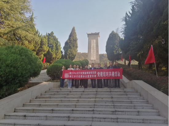 11月12日,镇江市**银行中心支行纪委监察室党支部、镇江市**银行纪委办公室党支部联合组织党员前往溧水开展党建结对共建活动。活动期间,党员同志们到溧水“回峰山苏南反顽战役阵亡将士纪念碑”举行敬献花篮和重温入党誓词仪式教学活动,同志们还在体验馆集体临摹入党誓词,参观了钟国楚、江渭清、陈毅等老一辈无产阶级革命家的旧居。