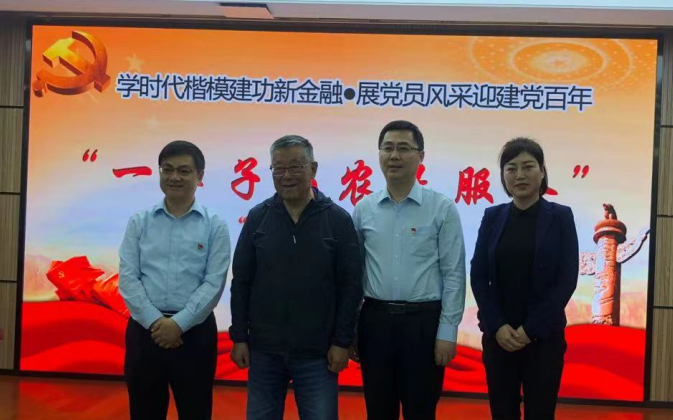 专题党课结束后,大家和赵老亲切合影。参加听课的全体党员纷纷表示,要以习近平新时代中国特色社会主义思想为指导,以亚夫为榜样,学习亚夫精神,发挥党员模范带头作用,建功新金融,以实际行动和优异的成绩向中国共产党成立100周年献礼。
