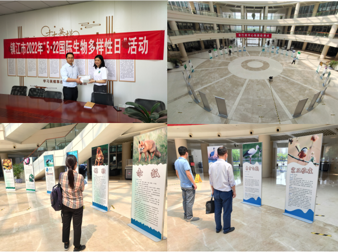 在市行政中心市民大厅,30块展板,分生物多样性的概念、习近平生态文明思想、镇江市自然地理概况、镇江市生物多样性、保护成效案例五个板块,向广大市民展示了第22个“国际生物多样性日”“共建地球生命共同体”的活动宣传主题。