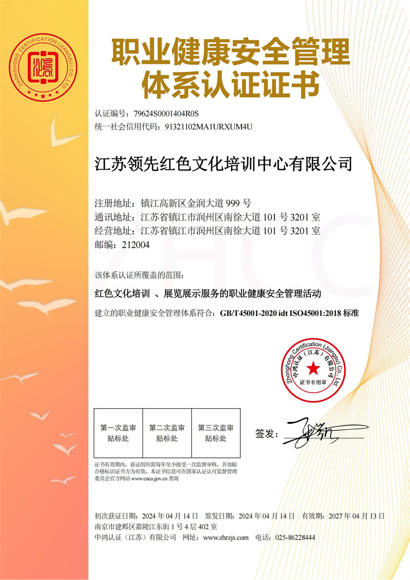 职业健康安全管理体系认证证书