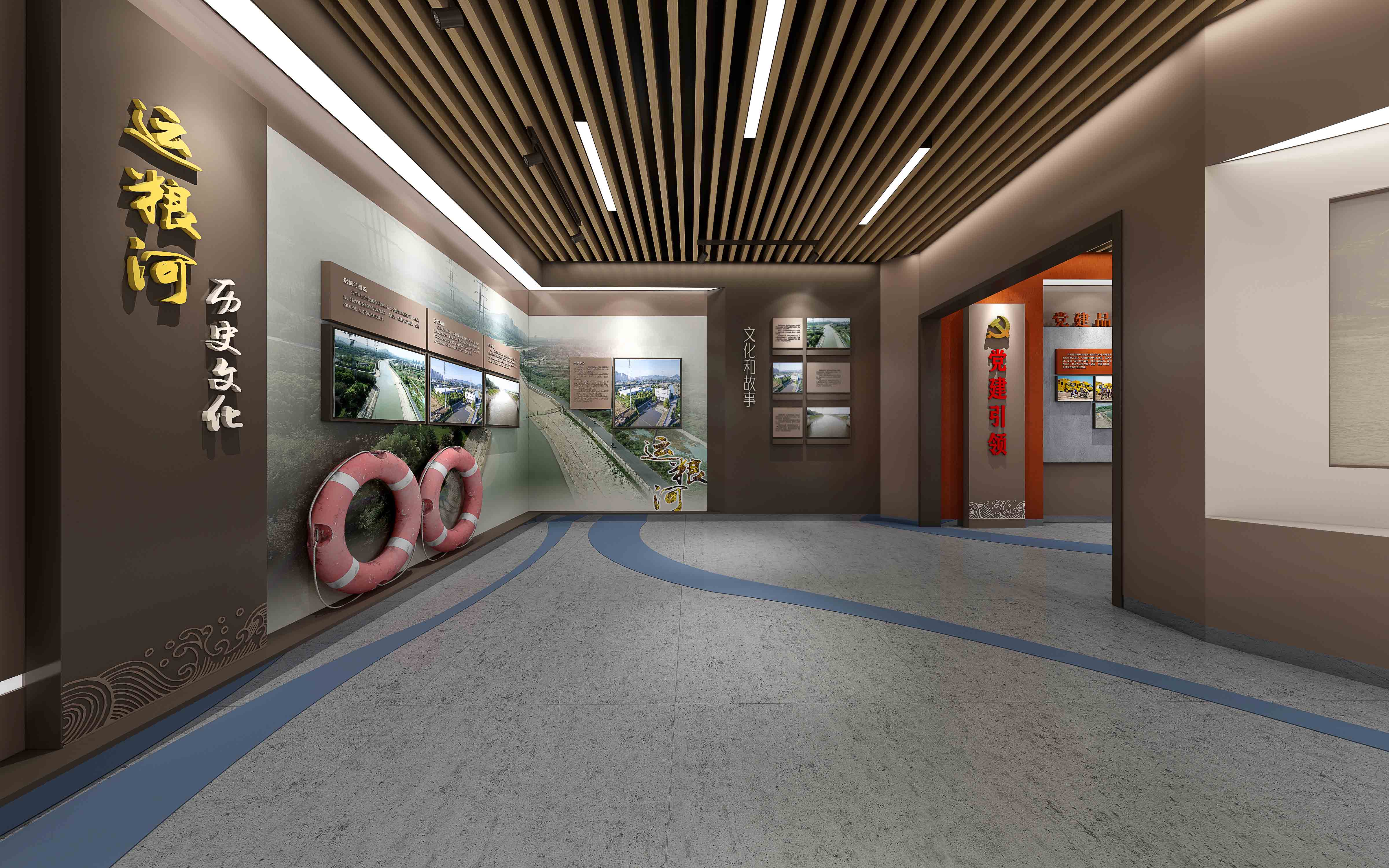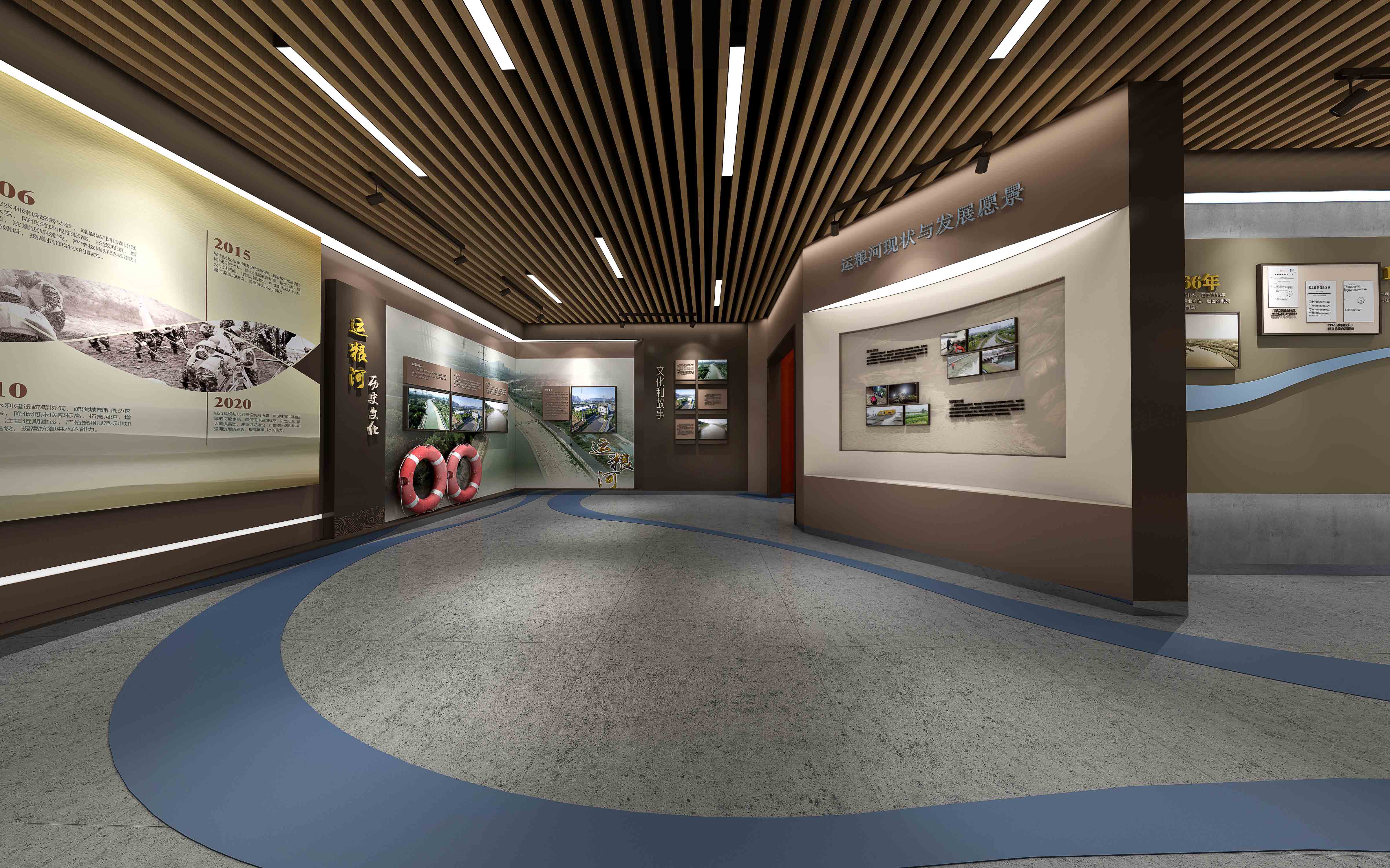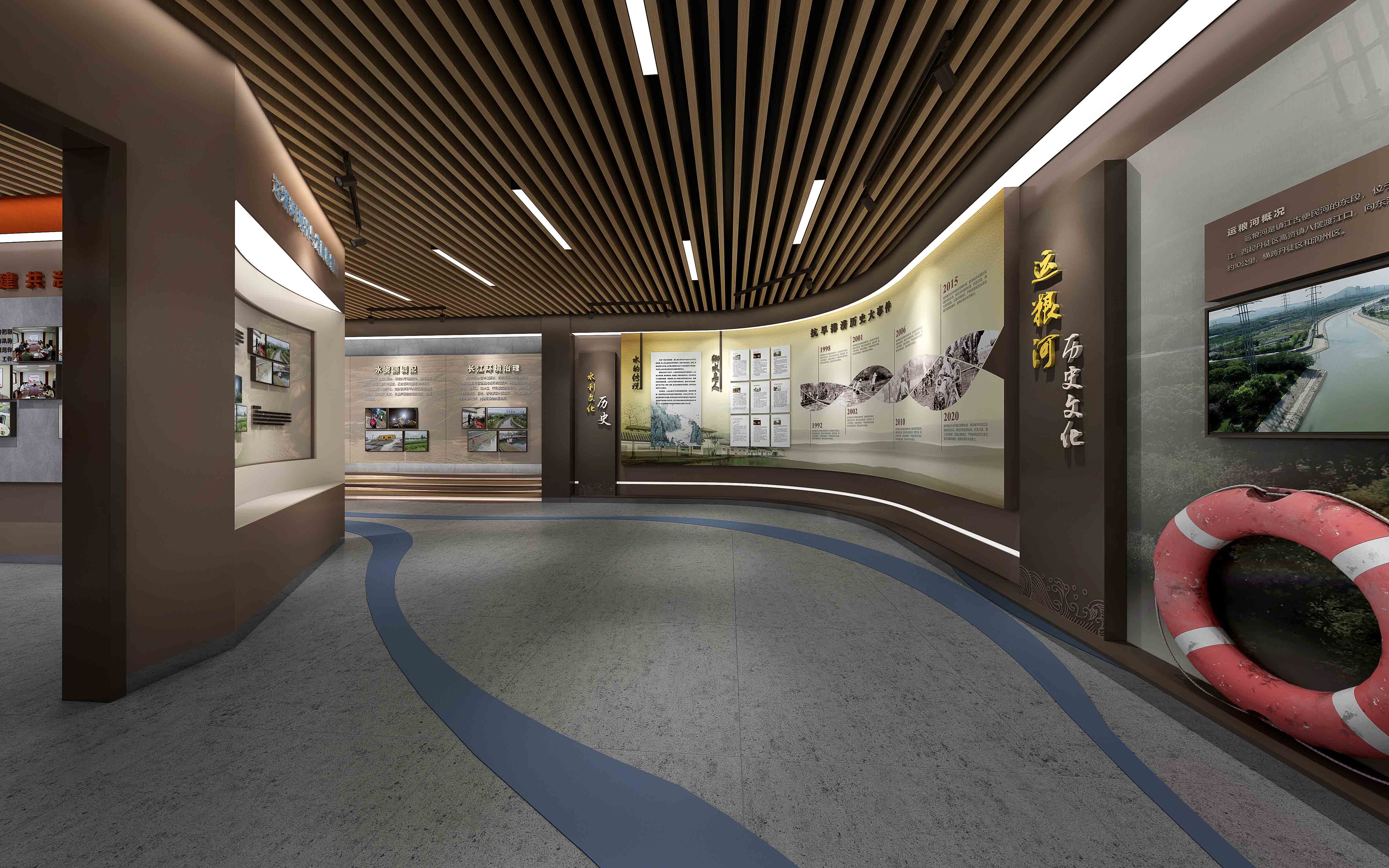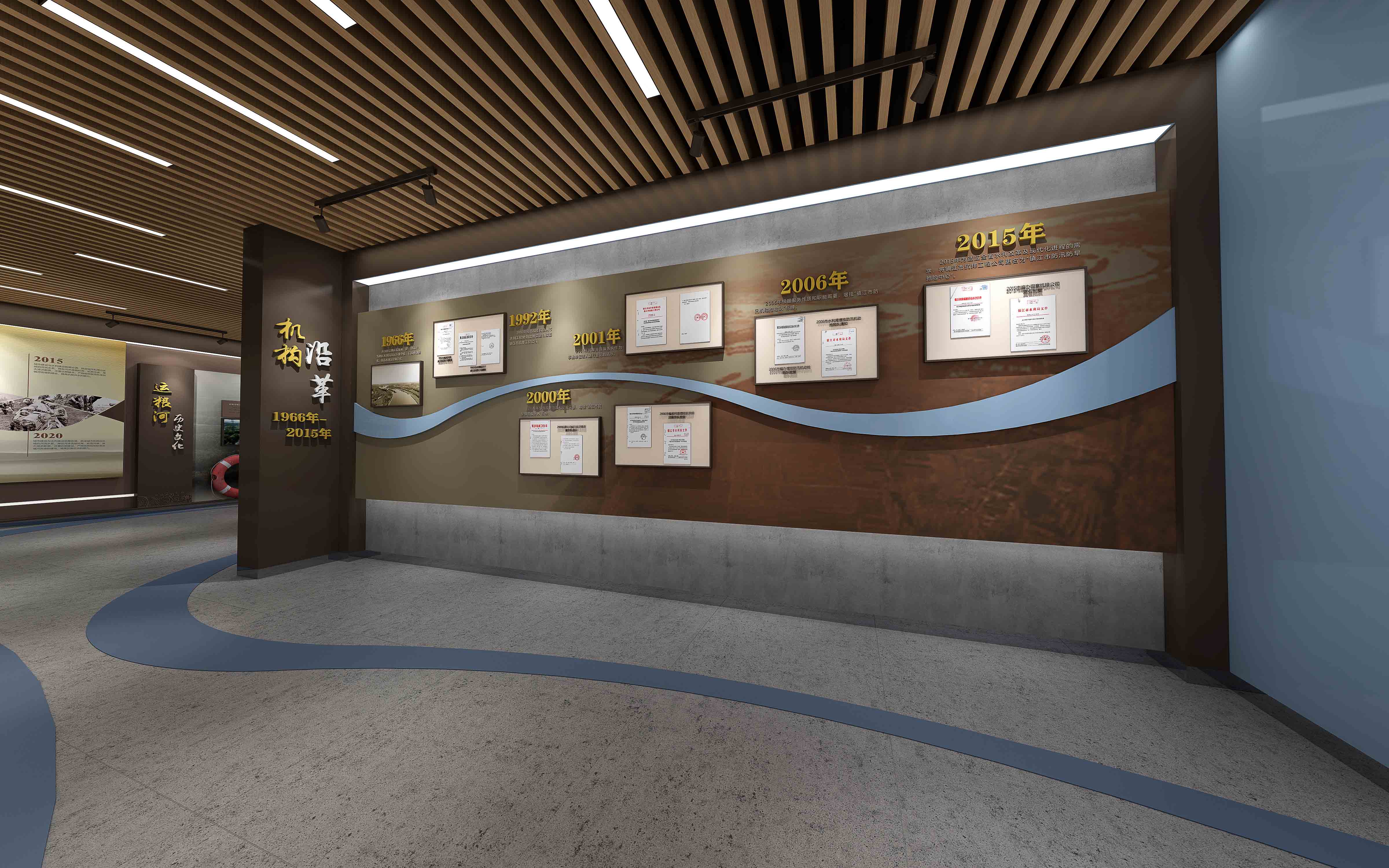 由江苏领先设计施工的“安澜馆” 既具创新思维、又有历史文化底蕴,是江苏领先全力打造的又一新作。设计团队以现代简约的形式围绕“治水、管水、兴水”这一主线,通过声光电和实物展示的形式,从党建引领、为民服务、科技兴水、运粮河历史文化、领导关怀、荣誉展示等方面展示了镇江市防汛抢险人在长江和大运河交汇处,60年薪火相传,为保护镇江古城安澜,在防汛抢险事业第一线无私奉献聪明才智和青春年华的光辉历程。