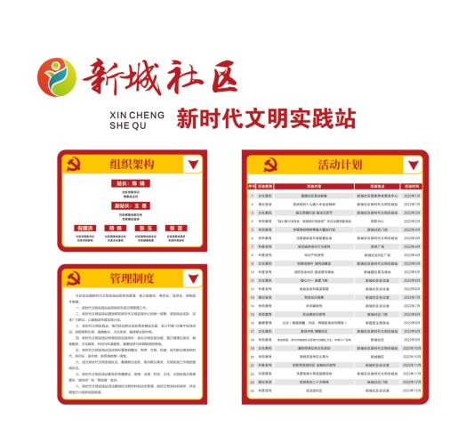 新城社区成立于2013年9月,现有在册党员130名。新城社区党委把学习贯彻习近平新时代中国特色社会主义思想作为首要政治任务,坚持以党建引领为核心,融合辖区内多种资源,积极构建“一核引领、多维融合”的基层治理工作模式,着力打造党建引领基层治理新格局。社区按照习近平总书记“推进新时代文明实践中心建设,不断提升人民思想觉悟、道德水准、文明素养和全社会文明程度”的要求,建设“新城社区新时代文明实践站”,江苏领先文化受新城社区委托,从设计到施工,高水平、高质量、按时完成了文明实践站的建设。