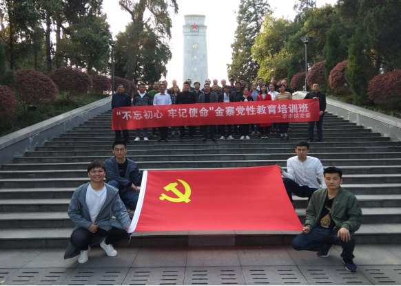 在金寨县革命烈士陵园,学员们满怀无限崇敬的心情向烈士纪念碑敬献花篮,肃立致敬。面对鲜红的党旗,全体同志举起右拳庄严地宣誓,重温入党誓词。不忘初心使命,坚定为人民服务,为共产主义事业奋斗终身的决心和信心。