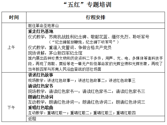 为配合“不忘初心 牢记使命”主题教育活动的深入开展,我中心近期推出以下红色文化教育新产品:一:“五红”专题培训