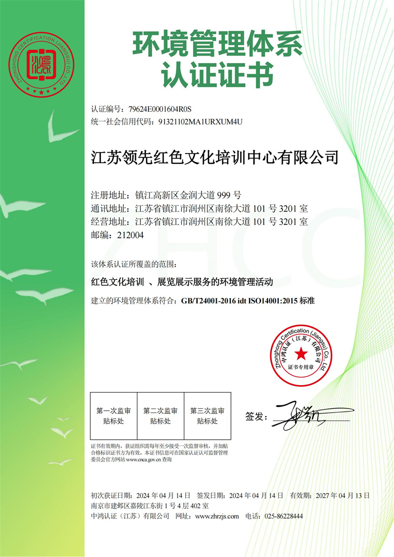 环境管理体系认证证书